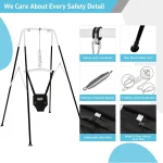 The stand is made of robust extendable steel and a scientific triangular design, so it is very stable and durable. The swing set comes with strong ropes and a safety belt. The baby jumper is equipped with 304 stainless steel springs, two buckles and an adjustable soft cotton seat belt. They are a perfect gift for Children’s Day and Christmas.