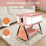 Triangular stable design & thickened frame of baby bassinet provide infant a safe and comfy space.Safety strap could connect to the adult bed, providing a safer environment for babies.