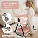 Healthy sleep, designed for 0-6 months old baby, spacious space, free turning over, free movement, no pressure. This bassinet could change to cradle mode, which can soothe babies to fall asleep faster.