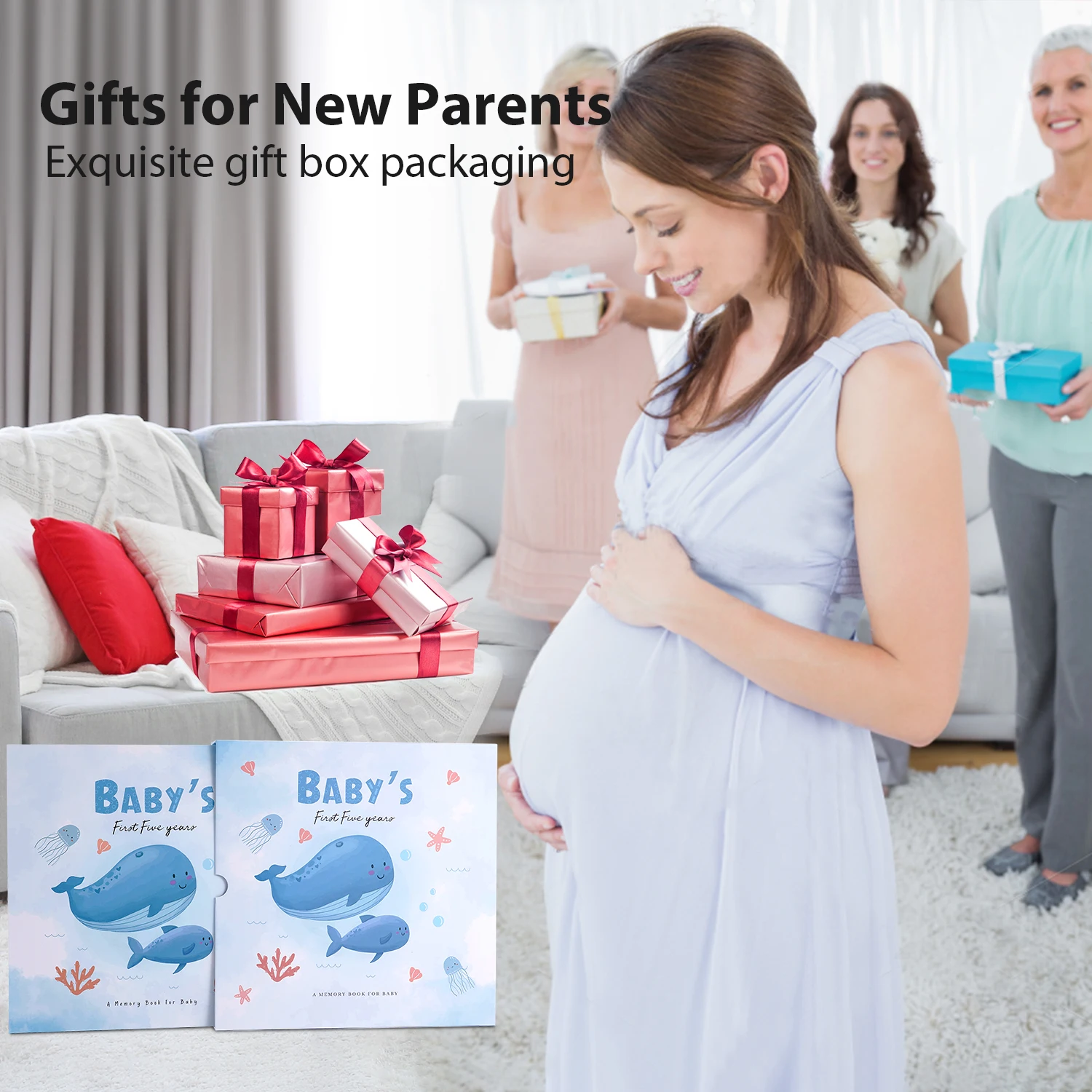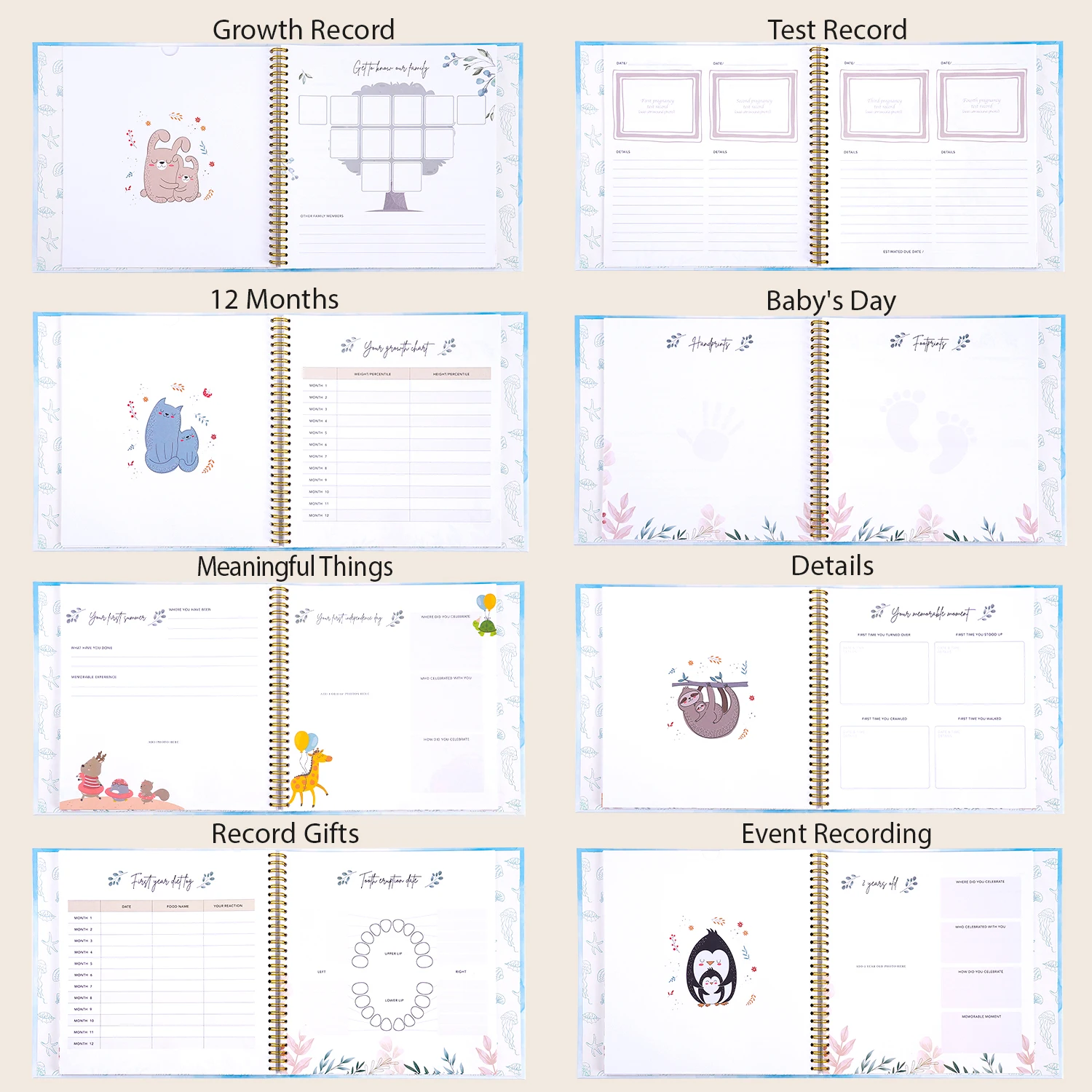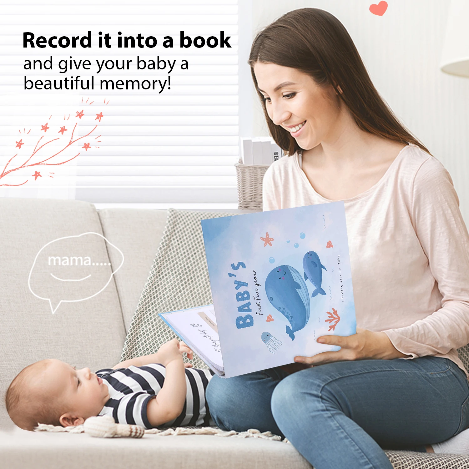 Our beautiful baby memory book will help you to create the perfect baby keepsake for your baby boy or baby girl. New parents are guided through the first year of the child's journey with photo and writing spaces to document monthly birthday pages, and records ultrasound pictures, baby showers, growth chat and first bubble bath and so much more!