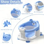 Soft Cushion & 4 Anti-slip Suction Cups: 4 non-slip suction cups on the bottom of the toddler bath seat ensure stability. It attaches easily and securely to any smooth surface, avoiding slipping or tipping. Soft, breathable cushions make the baby feel comfortable on it.