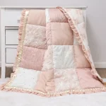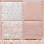 Pink Bows and Floral Theme: Enhance your toddler or baby girl’s crib bedding set with this luxurious patchwork baby comforter, crafted from premium fabrics with a cotton backing in dusty pink and golden trims, ideal for a princess-themed nursery decor.