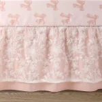 Universal Fit: The fitted cotton crib sheet is designed to fit standard crib mattresses measuring 28 x 52 with all-around elastic for a secure and snug fit. The dust ruffle is a layered luxury with a 4-side design and a generous 16 drop length.