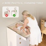 This changing table dresser is tested at third-party, accredited laboratories to meet or exceed all applicable category voluntary and mandatory standards. The baby changing table material is MDF, the wood is odorless, strong, and stable, with reinforcement design at the bottom of the table, offering a safe use environment for babies.