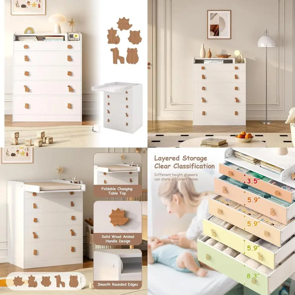 This versatile changing table dresser is designed to be used in various settings, whether in the bedroom or the baby room. It offers features such as diaper changing, massage, and cloth changing. The baby dresser can also be used to display potted plants, books, and other items to decorate the room, making it the perfect storage solution for nurseries, living rooms, daycare centers, or parents.